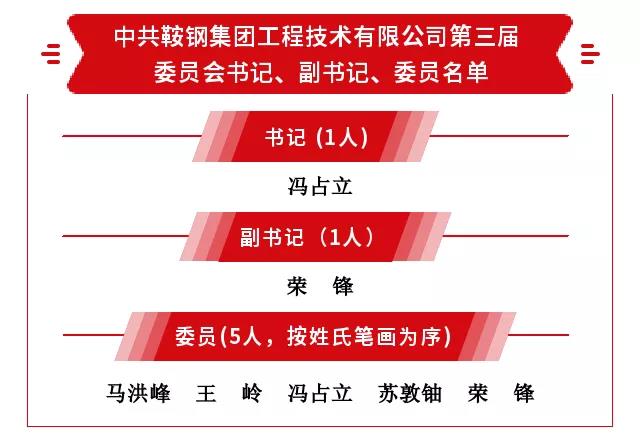 會(huì)議聽(tīng)取和審議中共鞍鋼集團(tuán)工程技術(shù)有限公司第二屆委員會(huì)的報(bào)告和中共鞍鋼集團(tuán)工程技術(shù)有限公司第二屆紀(jì)律檢查委員會(huì)的工作報(bào)告,選舉產(chǎn)生了中共鞍鋼集團(tuán)工程技術(shù)有限公司第三屆委員會(huì)和中共鞍鋼集團(tuán)工程技術(shù)有限公司第三屆紀(jì)律檢查委員會(huì)。